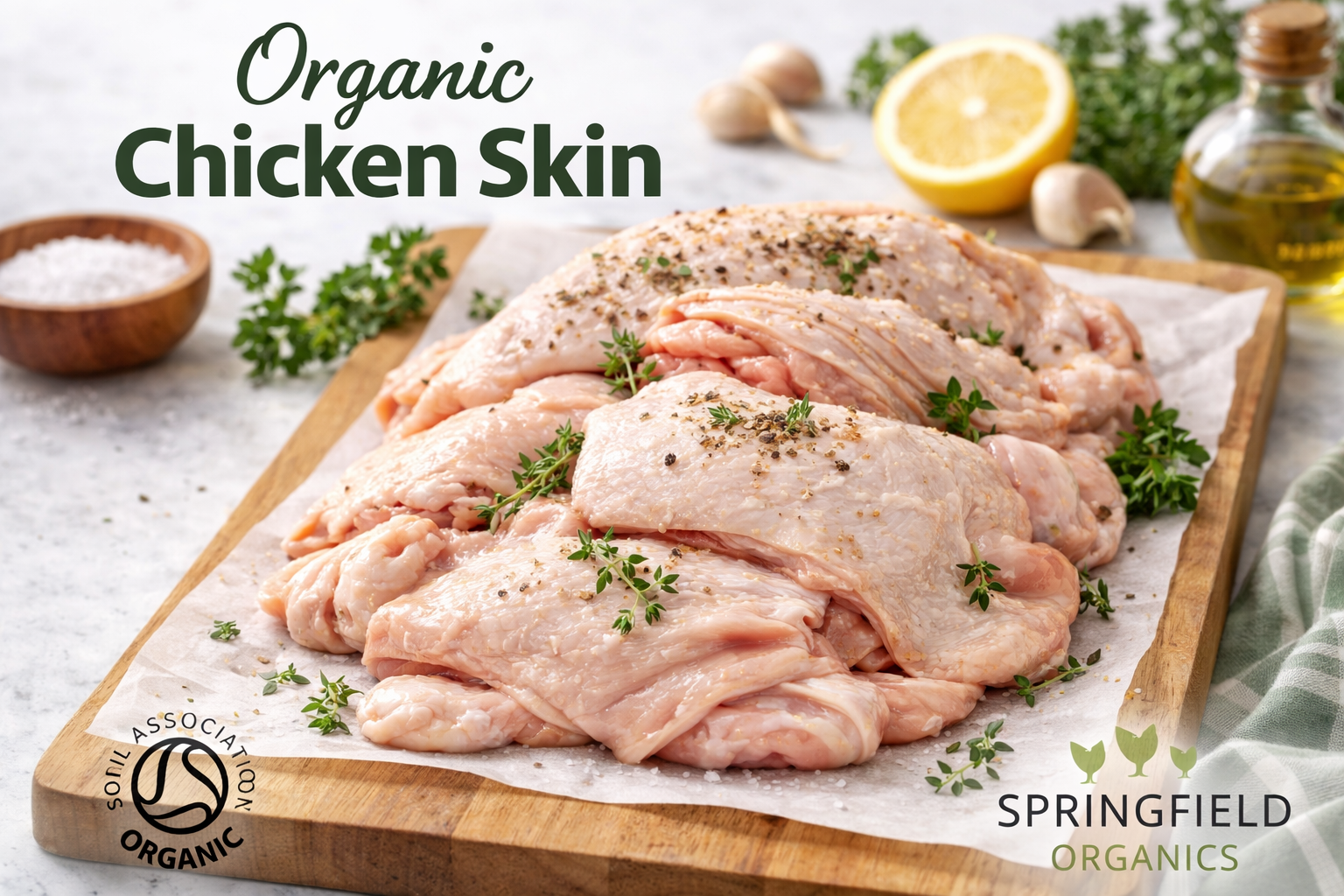 Our Organic Chicken Skin is produced from fully certified organic, free-range chickens raised to the highest welfare standards. Carefully removed during processing, it’s perfect for adding rich flavour, natural fats, and unbeatable crispness to your cooking.